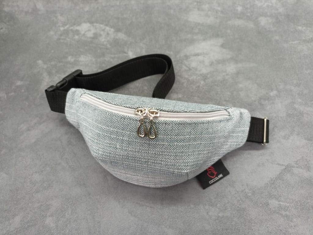 Saszetka na biodro "nerka" z tkaniny chustowej. Niezastąpiona podczas codziennych zajęć.
