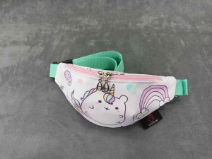 Saszetka na biodro "nerka" z tkaniny wodoodpornej z motywem kota jednorożca.