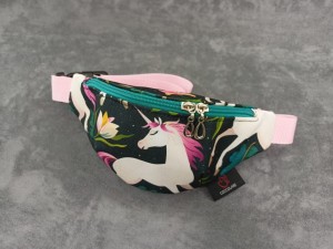 Saszetka na biodro "nerka" z tkaniny wodoodpornej z motywem jednorożców/unicorn