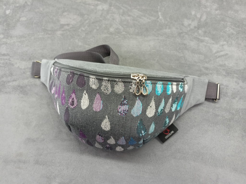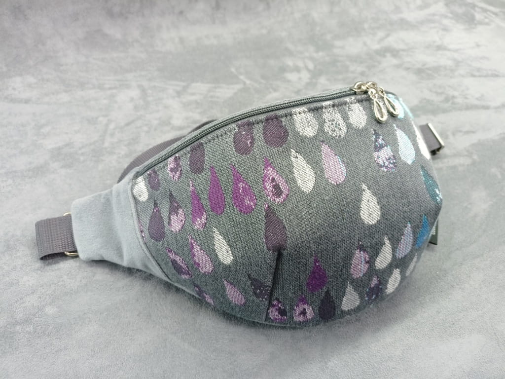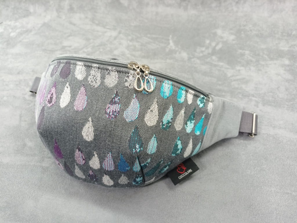 Saszetka na biodro "nerka" z tkaniny chustowej i weluru. Niezastąpiona podczas codziennych zajęć.