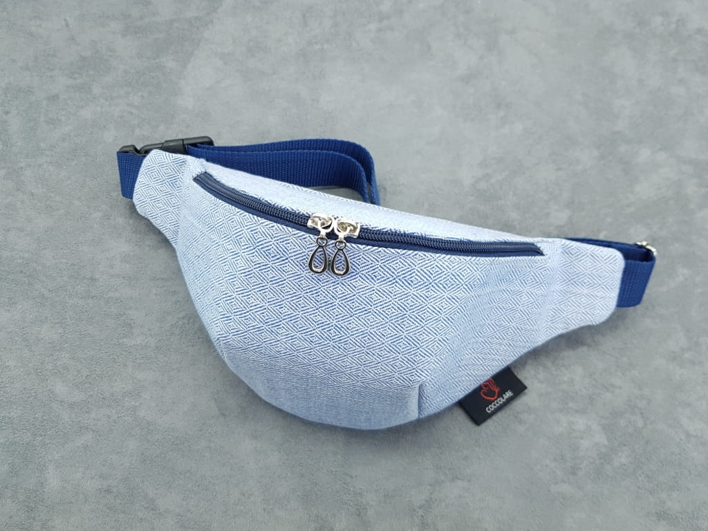 Saszetka na biodro "nerka" z tkaniny chustowej. Niezastąpiona podczas codziennych zajęć.
