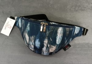 Saszetka na biodro "nerka" z tkaniny wodoodpornej z motywem piór.