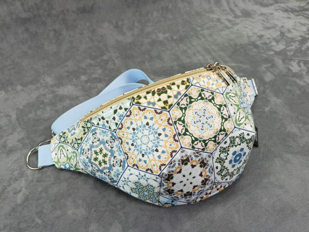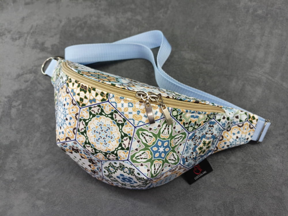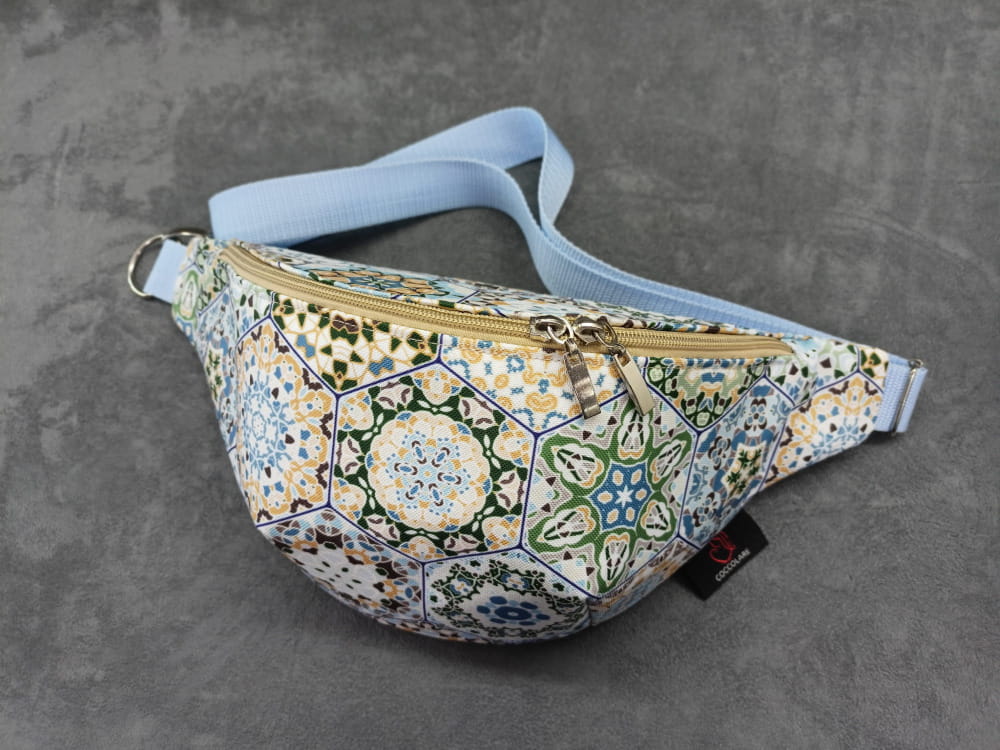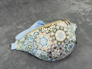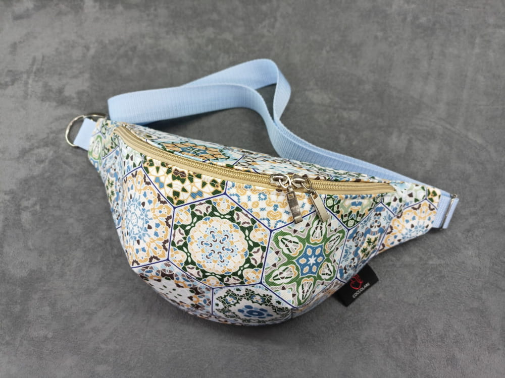 Saszetka na biodro "nerka" z tkaniny wodoodpornej z motywem kafelek - portugalskich heksagonów